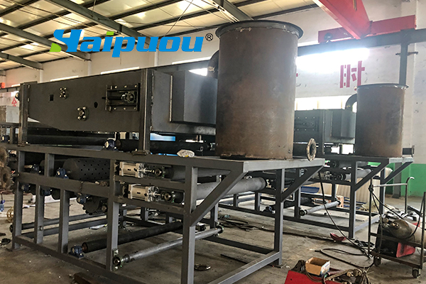 1、第一重力脫水段為傾斜式,使污泥距地面高達1700mm,使污泥在重力脫水段高度增加,提高了重力脫水能力。