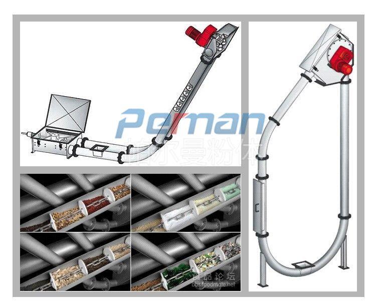 在輸送物料的過程中物料能夠在設備密封的管道中,物料是通過設備中的鏈片的傳動工作進行移送的,移送的方向是沿轉彎管道進行的傾斜、水平或垂直。