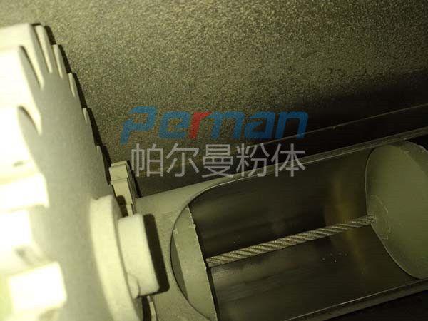 帕爾曼粉體設備設計生產(chǎn)的這種鋼絲繩管鏈輸送機包括自動箱(從動箱)、8齒鏈輪、電機減速機、帶盤片的運送鏈條,輸料管道。所述自動箱(從動箱)兩邊均設置有支管,支管與自動箱(從動箱)均相連通,8齒鏈輪裝置于自動箱(從動箱)內,所述輸料管形狀為曲折形,經(jīng)過法蘭銜接。輸料管兩端與自動箱(從動箱)兩邊設置的支管別離相連通地對應銜接,運送鏈穿過輸料管和支管內孔與自動鏈輪相傳動銜接。